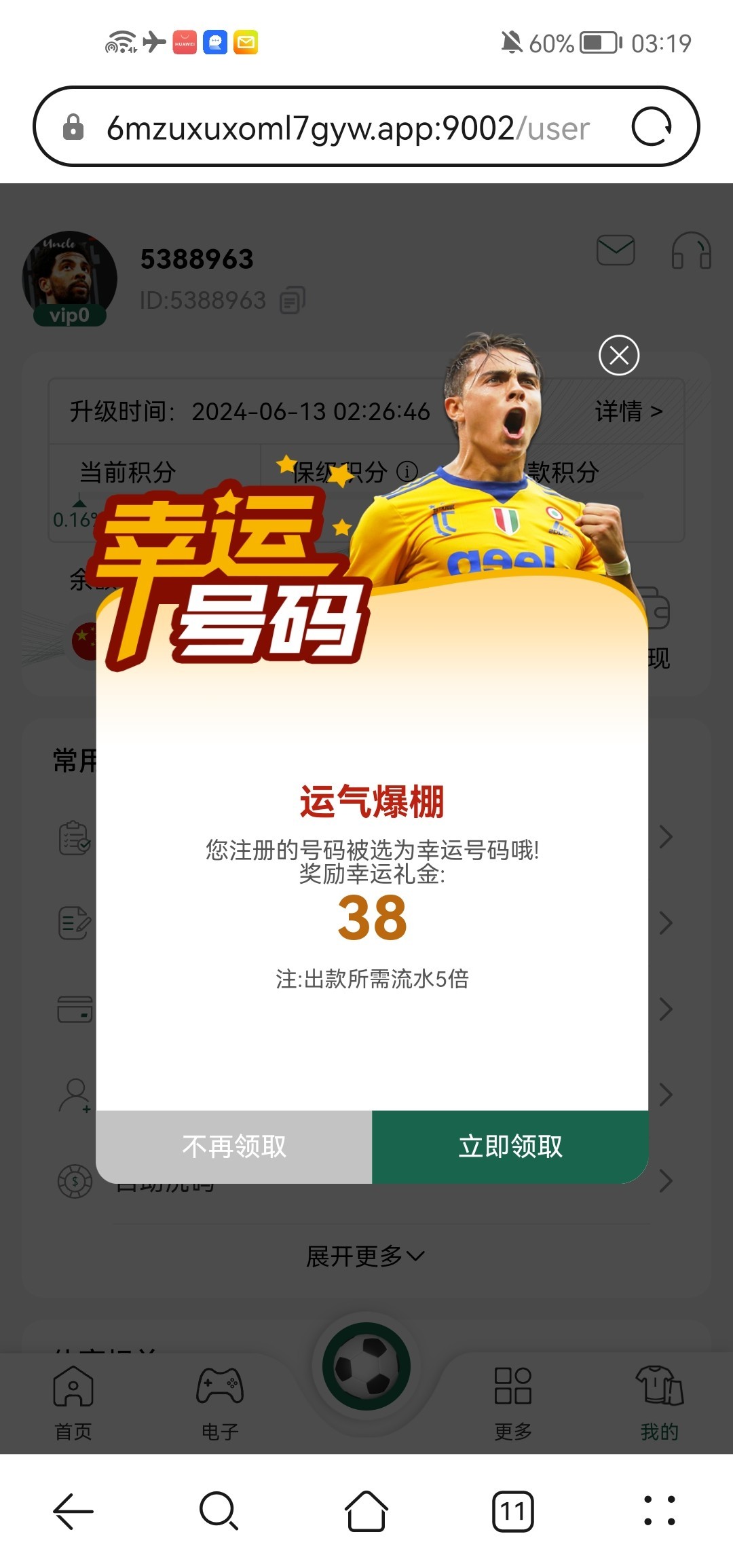 闲着没事登入上去,彩金就弹出来了我是去年四月特邀注册的,到现在没充过一毛钱,又给我送了38 网址 11365.com