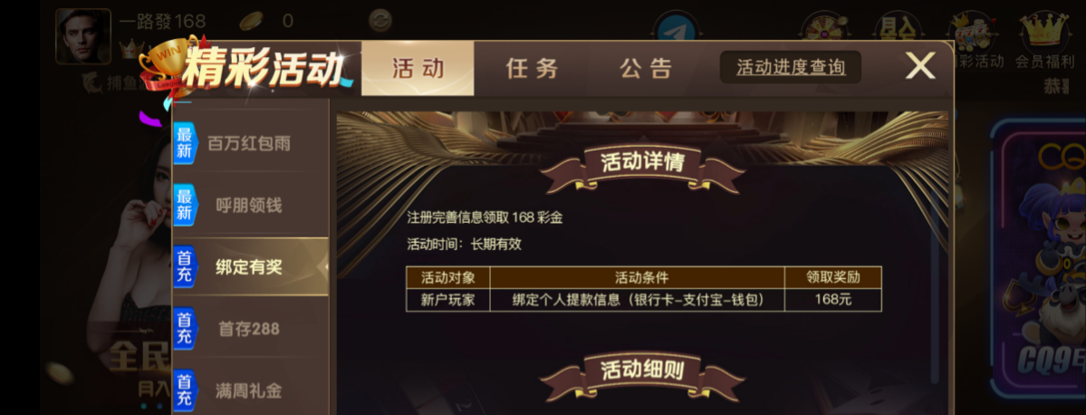 【168棋牌】—✅—注册彩金