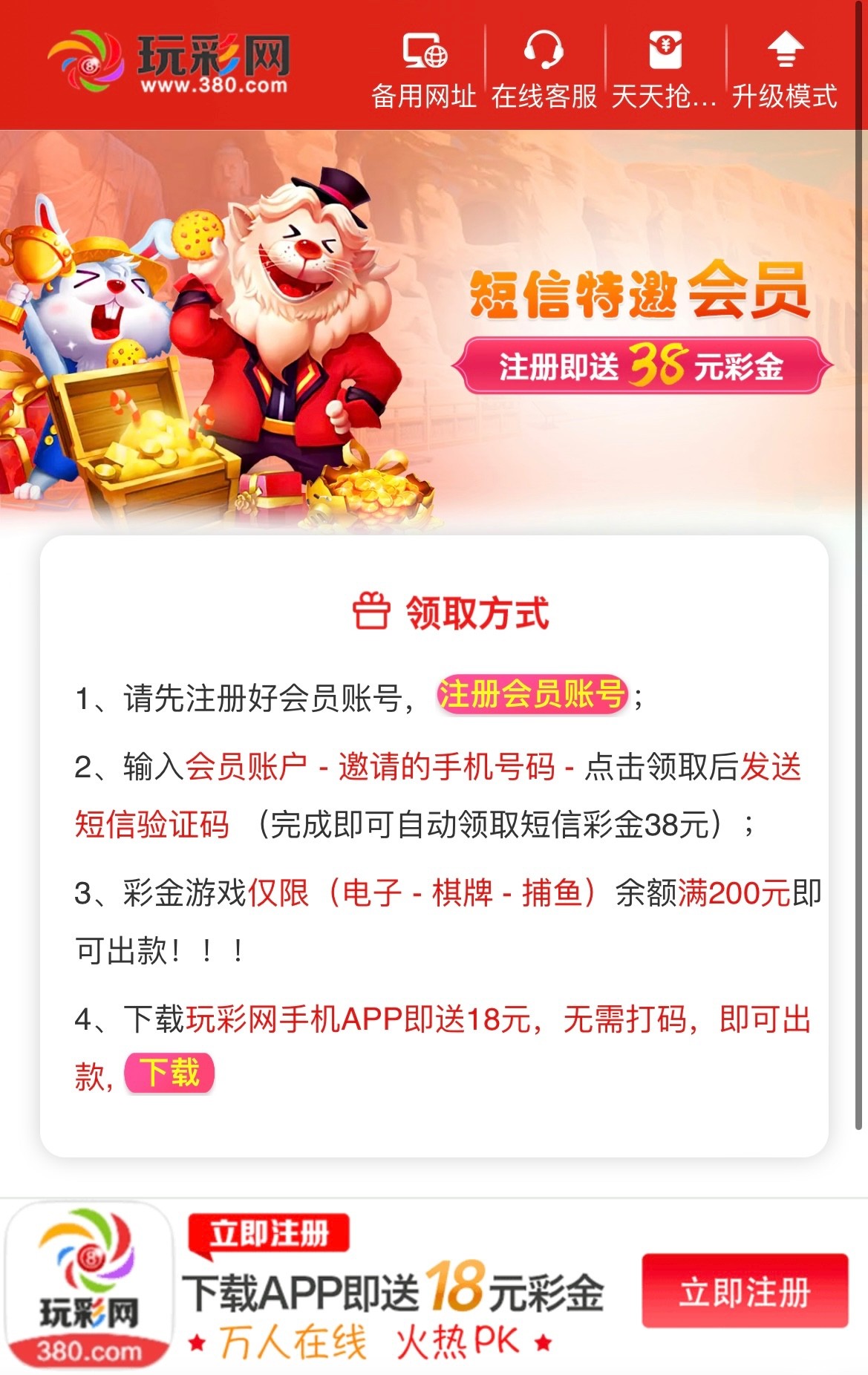 新用户注册完善个人信息根据平台要求发送验证码 符合的用户即可获取38平台彩金